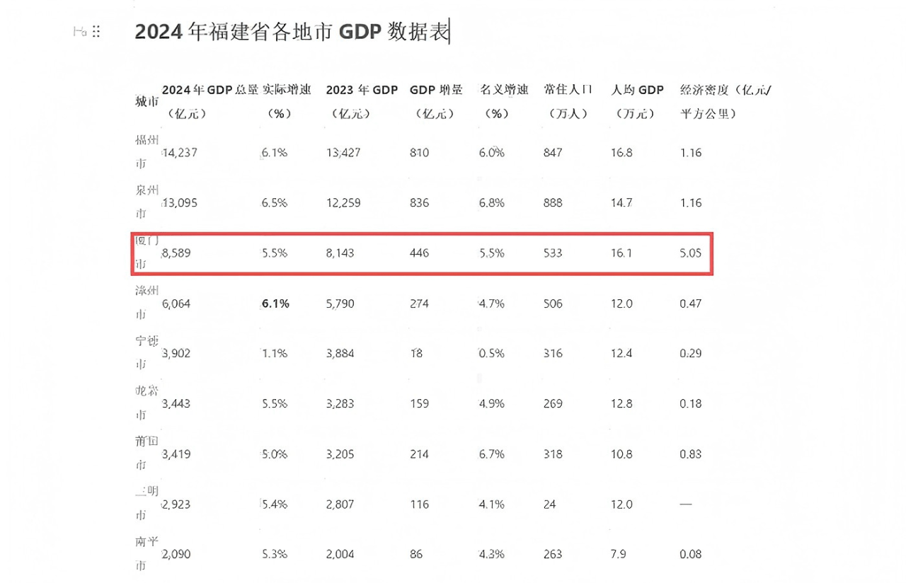 厦门正在过去一年取得的成就仍是众目睽睽的。2022年P增速4。4%,2023年3。1%,2024年前进不小,但正在福建九地市中的排名仍然处境尴尬,增速取龙岩相提并论,都是5。5%,正在全省排第四,只是跑平了全省平均程度。增速最快的是泉州6。5%,福州和漳州并列都是6。1%。