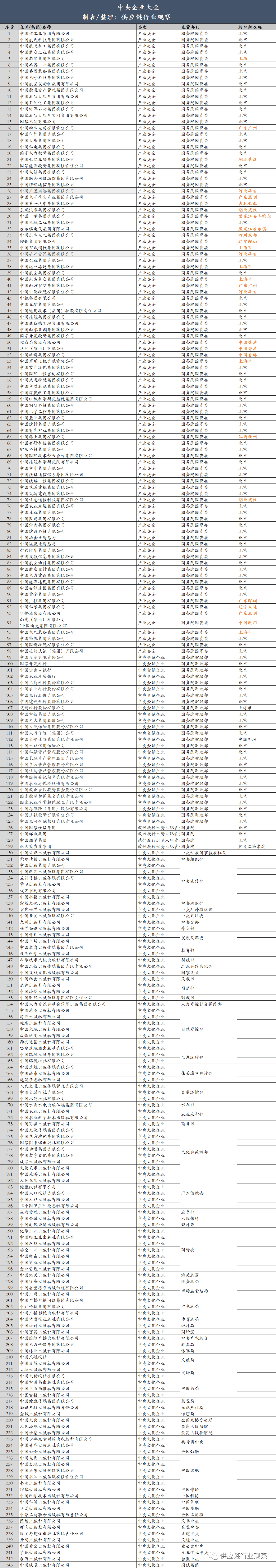 我国目前各类央企共243家,此中有列入国务院国资委央企名录的央企98家、列入财务部地方企业名录的央企145家。这些央企和国企正在2022年的停业收入是82。6万亿,净利润是4。32万亿,上缴税收5。93万亿。约有员工3390万。4月3日,易华录发布通知布告暗示公司收到现实节制人中国华录集团无限公司(以下简称华录集团)通知,华录集团正正在取中国电子科技集团无限公司(以下简称中国电科)规画沉组事项,华录集团拟整合进入中国电科。华录集团取中国电子科技集团整合后,国务院国资委监管的地方企业数量或将由现正在的98家削减为97家。排名1-53的为副部级央企。前53家地方企业的董事长、党委(党组)、总司理的人选由地方局常委会研究决定,这取一般副部长级干部的任免权限不异,因而被认为相当于副部级干部。所以,前53户正在报道中被称为中管企业,可是正在地方发文中,一般称为部门国有主要企业。除前53家央企,其余央企的代表人(大都是董事长)须报国务院党组任前存案同意。其监管由国务院国资委企业带领人员办理二局(简称“企干二局”)担任。前1-10为涉军工央企,别离为:中国核工业集团、中国航天科技集团、中国航天科工集团、中国航空工业集团、中国船舶集团、中国刀兵工业集团、中国刀兵配备集团、中国电子科技集团、中国航空策动机集团、中国融通资产办理集团。第11-22为能源类央企,此中11-14为石油类央企,别离为中石油、中石化、中海油及国度石油天然气管网集团;15-22为两大电网(南方电网、国度电网)及六大发电集团(华能、大唐、华电、国电投、三峡和国度能源集团);23-27为通信及电子消息央企,别离为:中国电信、中国联通、中国挪动、中国卫星收集集团、中国电子消息财产集团;28-33为配备制制类央企,别离为:中国一汽、春风汽车、中国一沉集团、中国机械工业集团、电气集团、中国东方电气集团;34-37为矿产资产类央企,别离为:鞍钢、中国宝武、中国矿产资本集团、中国铝业集团;38-41为交通运输行业央企,中国近海海运集团、中国航空集团、中国东方航空和中国南方航空集团。42-43为涉农类央企,包罗中国中化和中粮。此外,包罗中国五矿集团、通用手艺集团、中建集团、中国储蓄粮集团、中国南水北集结团、国投集团、招商局集团、华润集团、中国旅逛集团、中国商飞集团分属分歧业业。此外,正在这98家央企中,国务院国资委核准的以金融为从业的央企共3家,包罗中国五矿集团等。以房地产为从业的央企共16家。地方金融企业名录由财务部发布,目前共27家。地方金融企业共分地方办理带领人员的金融企业(以下简称中管金融企业)和其他地方金融企业。其他地方金融企业则为施行国有金融本钱办理相关轨制,由财务部代表国务院履行国有金融本钱出资人职责,纳入国有企业运营预算办理、担任组织实施年度绩效评价等工做。此中中管地方金融企业15家,别离为中国投资无限义务公司、三大政策性银行(国度开辟银行、中国进出口银行、中国农业成长银行)、五大国有贸易银行(工行、农行、中国银行、扶植银行、交通银行)、两大金控央企(中信集团、光大集团)及四大安全集团(中国人保、中国人寿、承平安全、中国出口信用安全集团)。其他地方金融企业12家,别离为四大资产办理公司(华融、长城、信达、中债登、中国农业再安全、中国政企合做投资基金股份无限公司、国度融资基金无限义务公司、国度农业信贷联盟无限义务公司、中国再安全(集团)股份无限公司、中国建银投资无限义务公司及中国银河金融控股无限义务公司。由国务院授权财务部履行出资人职责的企业共4家,别离为中国国度铁集团、中国邮政集团、中国烟草总公司、北大荒农垦集团无限公司。