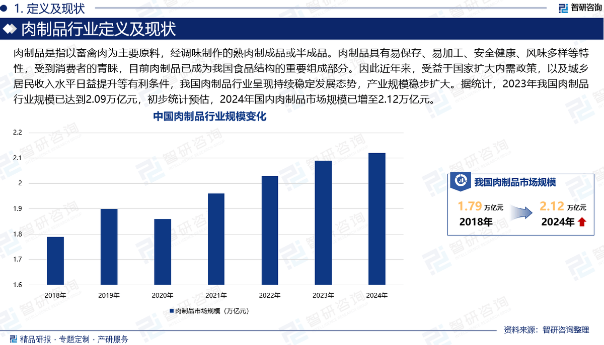 本演讲汇聚了智研征询研究团队的集体聪慧,连系国表里权势巨子数据,深切分解了肉成品行业的成长示状、合作款式以及将来趋向。我们秉承专业、严谨的研究立场,通过度、全方位的数据阐发,力图为读者呈现一个清晰、立体的行业画卷。